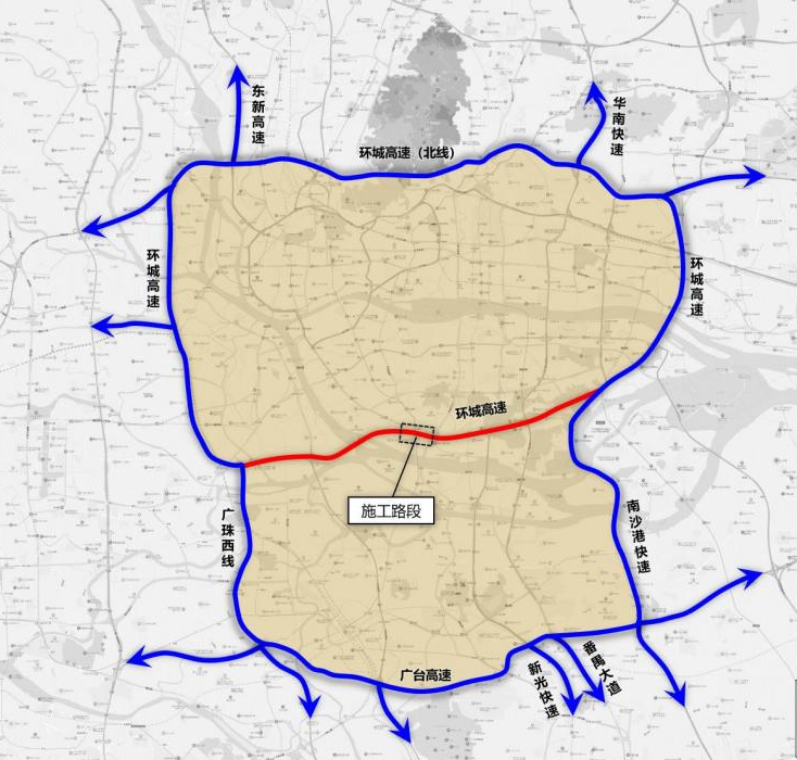 过境车辆,东西方向可绕行北环高速、南大干线或者广台高速;南北方向可绕行东新高速、西环城高速、广珠西线、新光快速、华南快速、东环高速。通过选择绕行,避开施工区域拥堵情况。