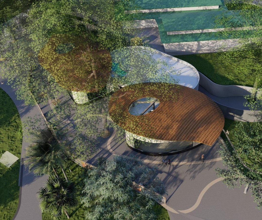 其中,熊猫馆以大熊猫宜居为主,以现有基底为辅,打造文化特色的活力之馆。建设内容包括改建原袋鼠馆、建设完成后增设大熊猫兽舍、室内展厅、室外运动场以及其他设施管理用房。其设计立意源自广州市花——木棉花,通过模仿生物形态化的语言,以“木棉花开”的寓意赋能建筑,提炼地域与文化特征概况。笼舍扩大完成后,进一步满足大熊猫的饲养空间,完善管理配套设施与功能,优化周边参观动线并提升游客观赏体验,极大改善大熊猫展区整体景观风貌。