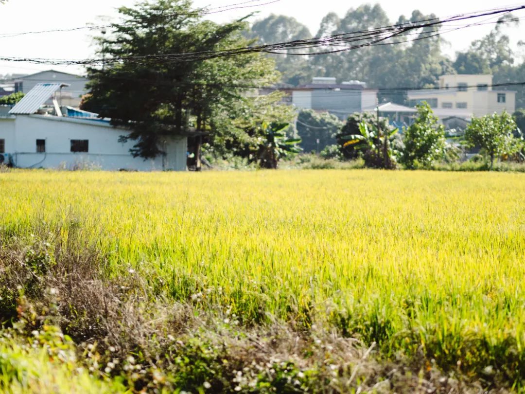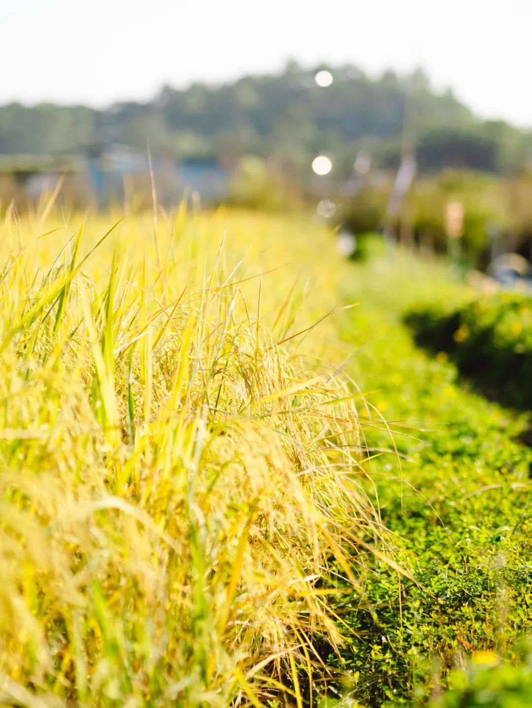 乘坐广州地铁21号线到朱村站下车,再转几站车,就可以去到空气里飘着稻香的朱村街丝苗米文化公园,一下就进入了一个金灿灿的世界,目之所及皆是沉甸甸的稻穗,满眼丰收景象,令人心情十分愉快。