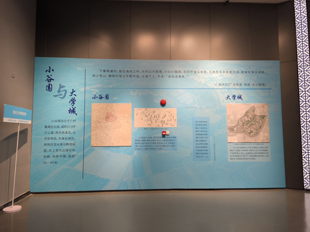 本次展览以广州大学城动工建设20周年为契机,精心展示了百余张图片、70多件(套)实物等档案文献资料,共分为“小谷围与大学城”“历史上的小谷围”“建设前的小谷围”“大学城的选址与建设”“大美大学城”等5部分。让市民群众在观看展览中进一步读懂小谷围、了解广州大学城,热爱广州大学城。