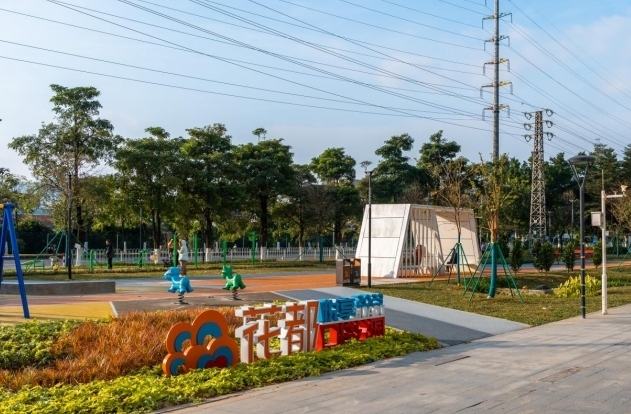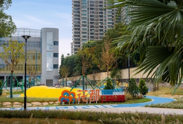 在悦享口袋公园数公里之外,还有一座占地约3800平方米的口袋公园——锦城口袋公园。考虑周边人口密度较大,居民游玩健身需求高,花都区城市管理综合执法局聚焦儿童需求,打造“城市文化新客厅”之下的儿童友好空间,为儿童打造专属骑行道,新增设置滑梯组合、游乐沙池等儿童活动设施。