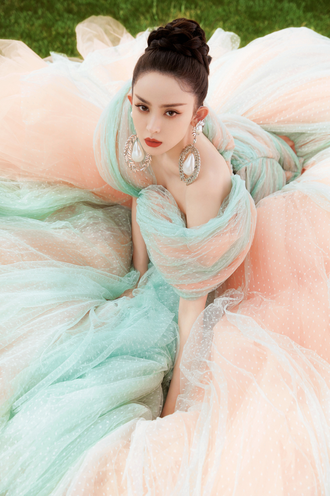 古力娜扎身穿Giambattista Valli高定渐变云雾纱裙