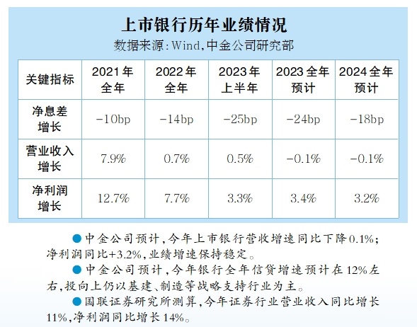 据国家金融监督管理总局党委书记、局长李云泽去年11月在2023金融街论坛年会开幕式暨全体大会上的主题演讲中透露,过去三年,中国银行业的信贷规模年均增速为11.2%。光大证券首席金融业分析师王一峰测算,2023年人民币贷款增量约23.3万亿元,同比多增2万亿左右,年末贷款增速或在10.9%附近。