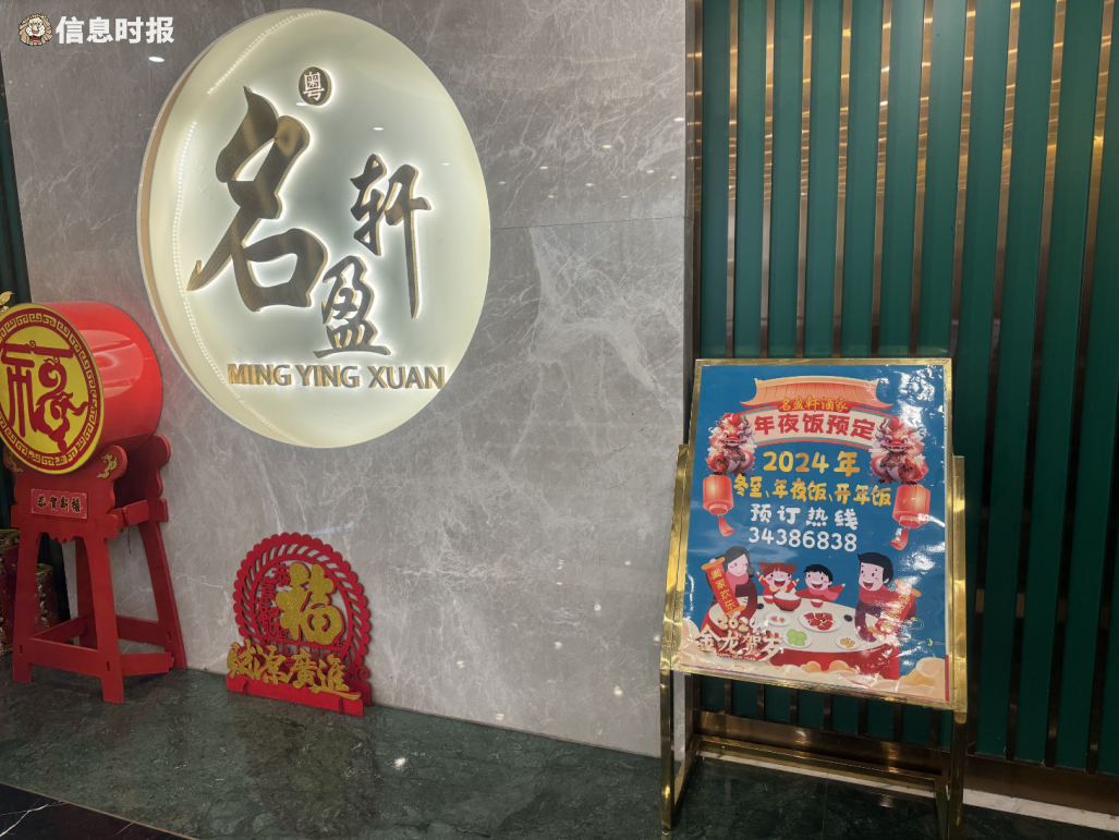 “不少熟客都是吃完中秋节家宴就把年夜饭订了。也有部分街坊早在去年‘五一’就开始咨询2024年年夜饭的预订信息。”在海珠区南华中路名盈轩酒家,记者看见门口醒目地摆着“年夜饭预订”宣传牌。