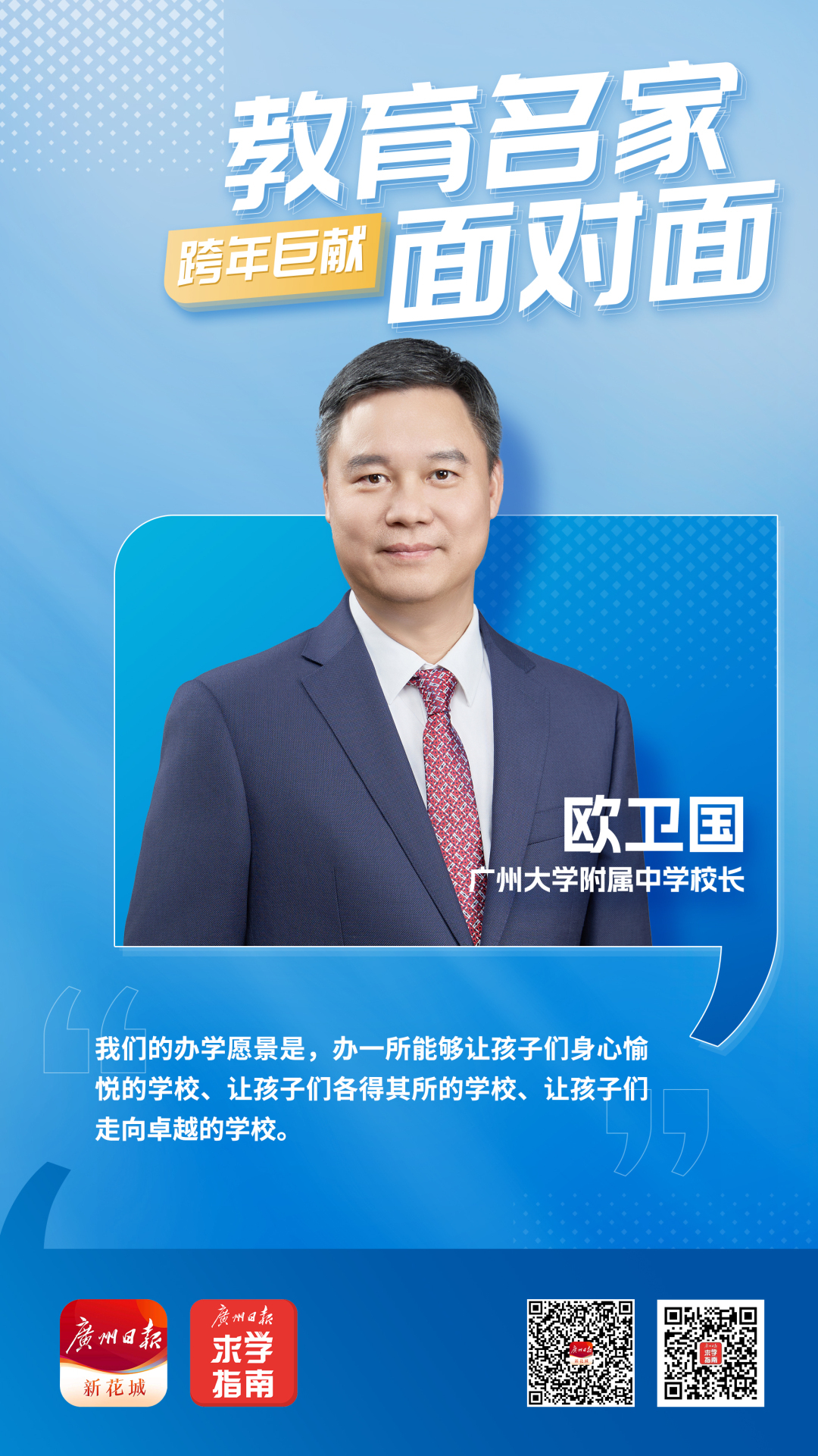 日前,广州大学附属中学(以下简称“广附”)入选北京大学博雅人才共育基地(2024-2026),成为广州公办学校中唯三入选学校之一。近年来广附学子在五大学科竞赛中表现卓越,进步迅猛,今年共斩获8枚国赛决赛奖牌。学校在人才培养方面有何经验举措?近日,广报求学“教育名家面对面”栏目专访广州大学附属中学校长欧卫国,听他解读广附如何在拔尖创新人才培养上践行责任担当,多维度落实因材施教,让每位学生快乐而不断进步。