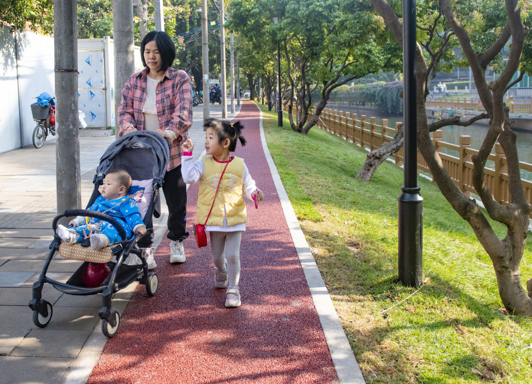 1月5日上午,阳光正好,记者走访看到,不少老人、婴孩在岸边晒太阳,还有市民闲坐、散步、锻炼、遛鸟……水岸生活悠闲、惬意。荔湾区水务工程建设管理中心主任鞠晖介绍,驷马涌流经荔湾区彩虹街、南源街两个人口密集的片区,近年来经历清污分流工程和排水单元达标建设,水质改善,结合老城区居民的切身需求,此次启动驷马涌滨水环境整治工程,旨在打开城市滨水空间,让群众更亲水,同时以两岸绿化、休闲广场、通行系统等的改造,迎合城市发展需要。