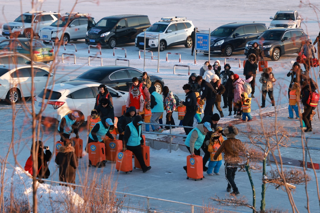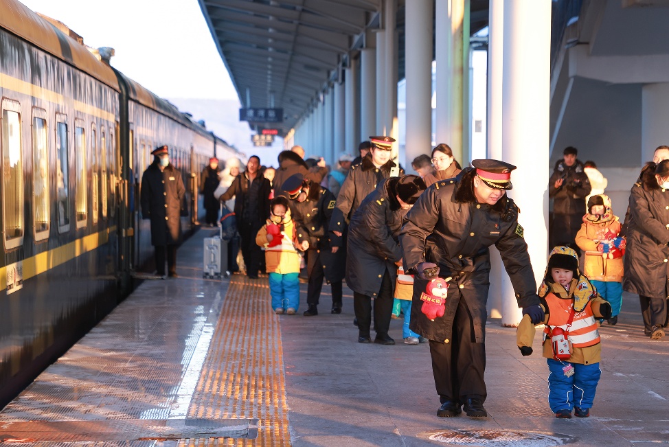 中国铁路哈尔滨局集团有限公司加格达奇车务段给每个“小砂糖橘”安排了一名“保镖”,帮助他们搬运行李,从专用通道进站乘车。