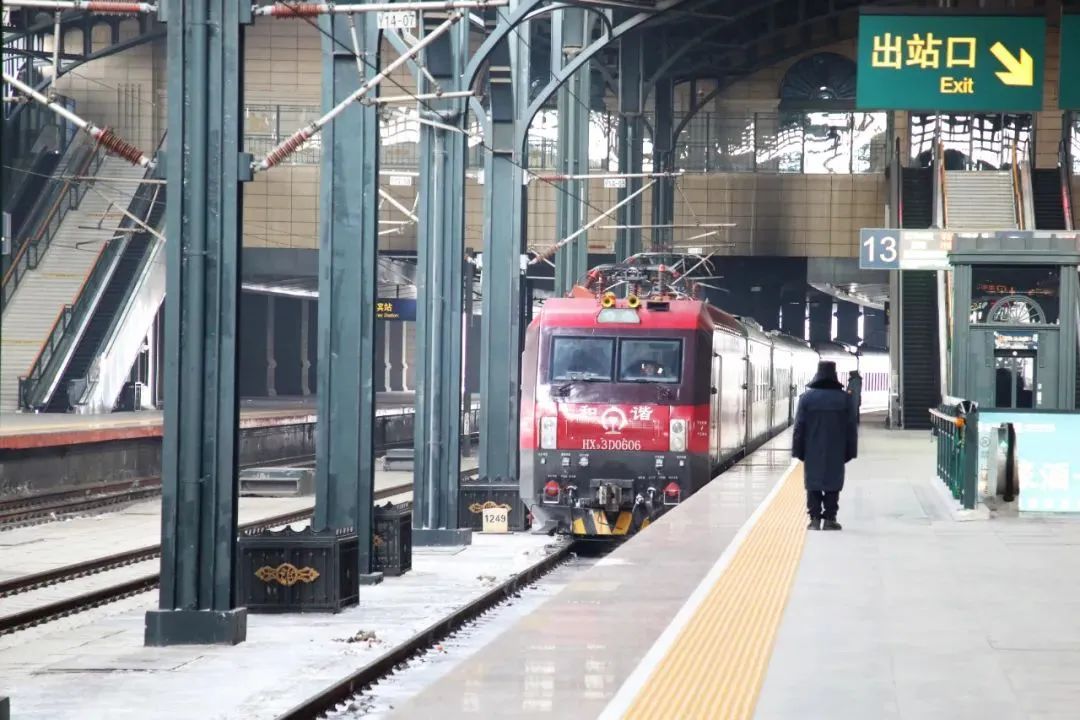 1月5日15时左右,K7042次旅客列车即将从漠河站发车返回哈尔滨。