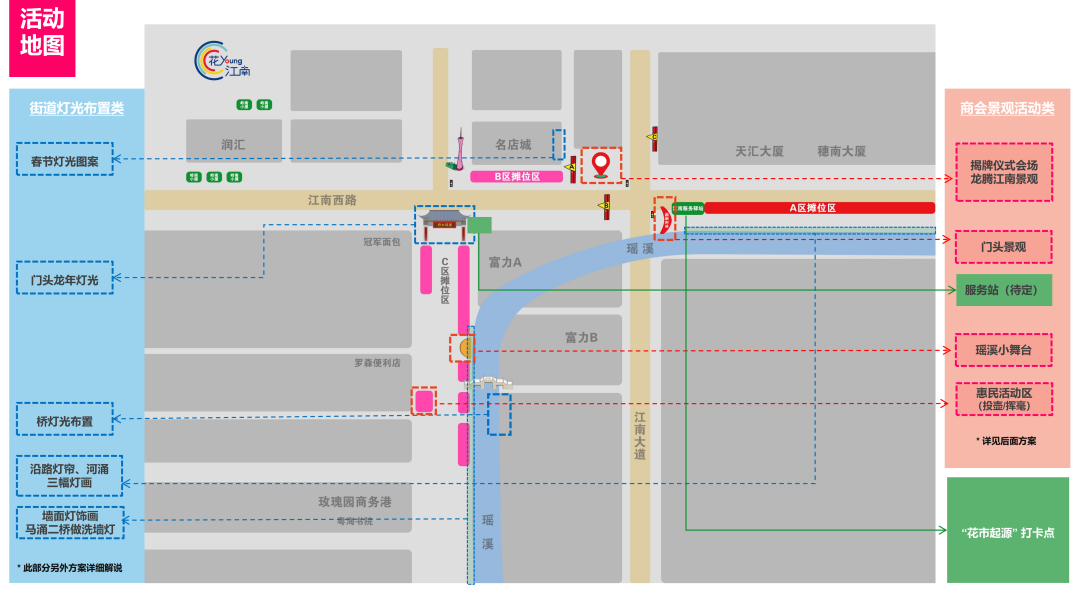 年货区:瑶溪及名店城路段30-40个摊位,售卖春节装饰品、对联、年货(糖果/瓜子/海味等等)、小吃美食等。