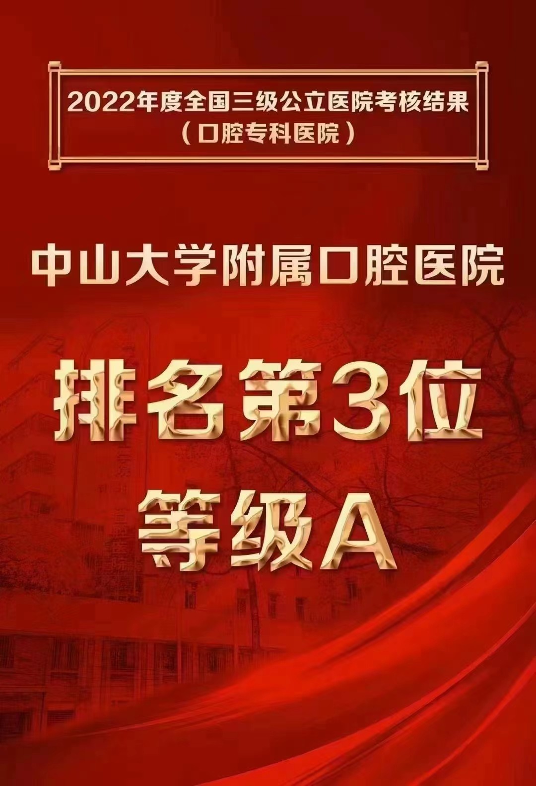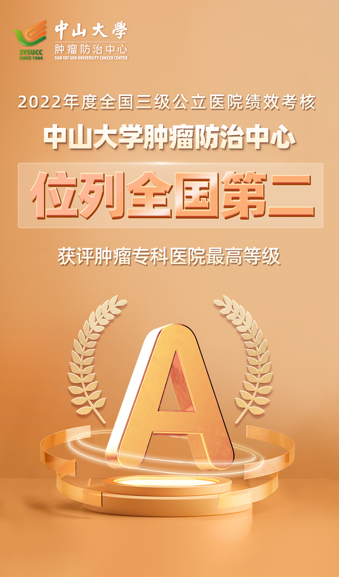 专科医院方面,中山大学肿瘤防治中心在全国50家肿瘤专科医院中位列第2名,蝉联肿瘤专科医院最高A等级,在26项国家监测指标中,该中心18项指标取得满分;中山大学附属口腔医院,在2022年度全国公立医院绩效考核(口腔专科医院)排名第3位,荣获A等级;深圳市康宁医院在所有参评三级精神卫生专科机构中,获全国第5名,取得“国考”该院历史最好成绩。