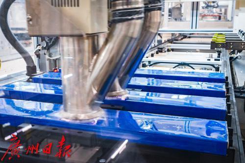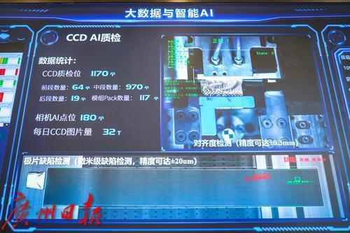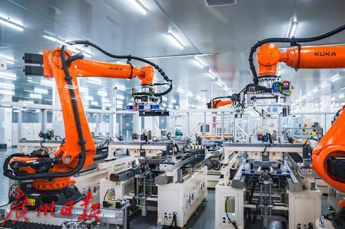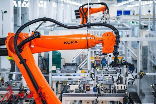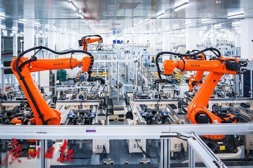2023年12月12日,广汽埃安智能生态第一工厂南面,一座建筑外立面以白色为主色调的工厂建成投产,比最初规划提前四个月。随后,第一批产品便经过小型物流车,运送到仅一墙之隔的广汽埃安智能生态第一工厂生产线,实现装车,进行大规模装车前的一系列测试。 该工厂名为“因湃”,投产之后,广州新能源汽车实现动力电池“自研自产”,产业链进一步可控,瞄准“万亿智车”之城,迈出一大步。近日,本报记者走进因湃电池工厂,进行实地参观和采访,了解广州汽车产业“电池+整车”联动生产的最新进展。
