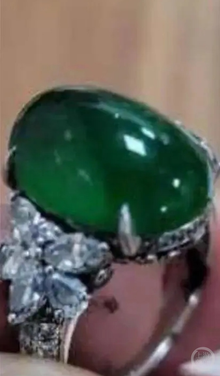 一名自称是翡翠主人但不愿具名的男子告诉媒体,这是一枚翡翠戒指,价值上百万元,是父亲为他准备的婚戒。
