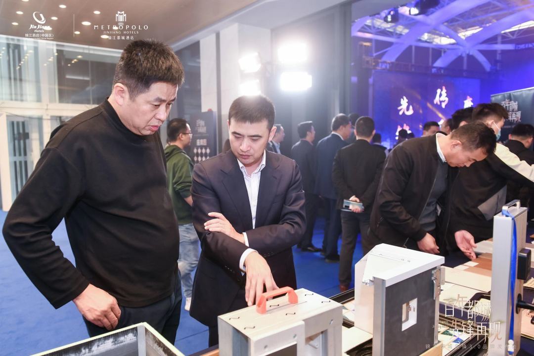 客房升级方面,锦江都城3.0提炼经典ART DECO元素以及高贵的蓝金色系,将“聚焦取舍、极致商务”的设计核心体现得淋漓尽致。客房精心打造满足现代商务人群需求的灵动商务区,如玄关处配备操作简易的翻转式熨衣板,一反以往繁琐沉重的老式熨烫板,协助差旅人士轻松解决衣物皱乱问题;配有升降式茶台的休息区,既可进行商务会谈,也适合休闲茶歇。同时,推出华为联名主题房、中华文化IP房等高溢价房型,以民族品牌、中华文化文创品牌特色提升商业溢价。发布会现场设有3.0商业模式展示区及客房体验区,通过华为PLC智能技术全面赋能酒店智能化建设,并通过模块化设计、装配式施工实现更高效能、更低成本,打造综合单房造价13.5万的民族中高端商务连锁酒店,国际化品质及显著的成本控制,令现场投资人惊叹不已。