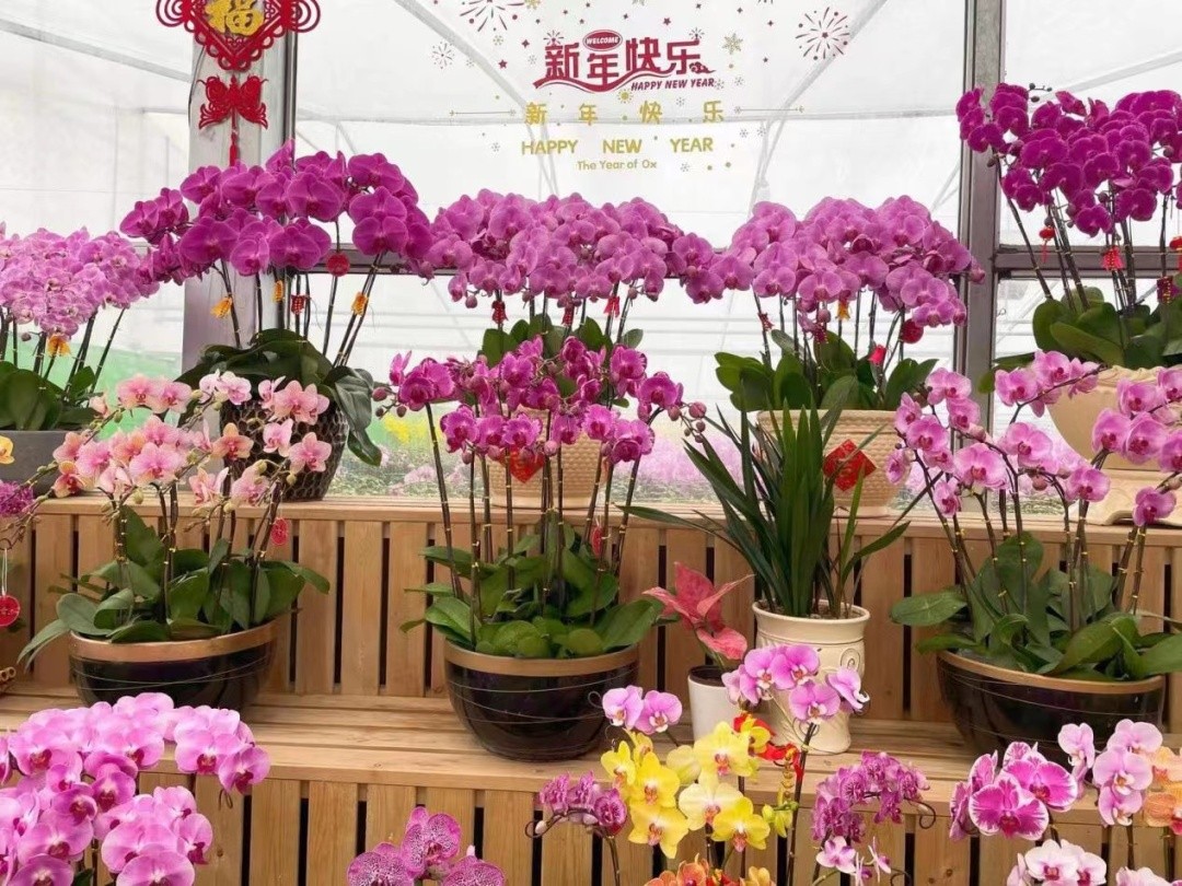 蝴蝶兰因花形似蝴蝶而得名,它花姿优美、色彩斑斓,被誉为兰中皇后。作为华南最大的蝴蝶兰产销基地,佛山市南海区里水镇是广东乃至全国有名的鲜花小镇,是“中国香水百合名镇”,里水镇蝴蝶兰种植面积近2000亩,年产量约5500万株,年产值超10亿元,联结带动近4000户农户增收增富。蝴蝶兰种植产业已成为里水现代农业的一张亮丽名片,在国外市场深受欢迎。