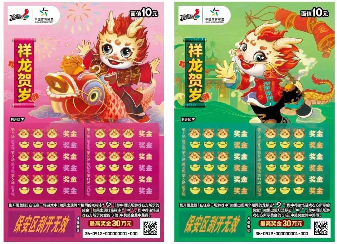 6款龙年新春主题票上新,扫票还能抽好礼,搭配“顶出一年好运势”趣味互动游戏,体彩即开票顶呱刮开启新年好运三重奏。
