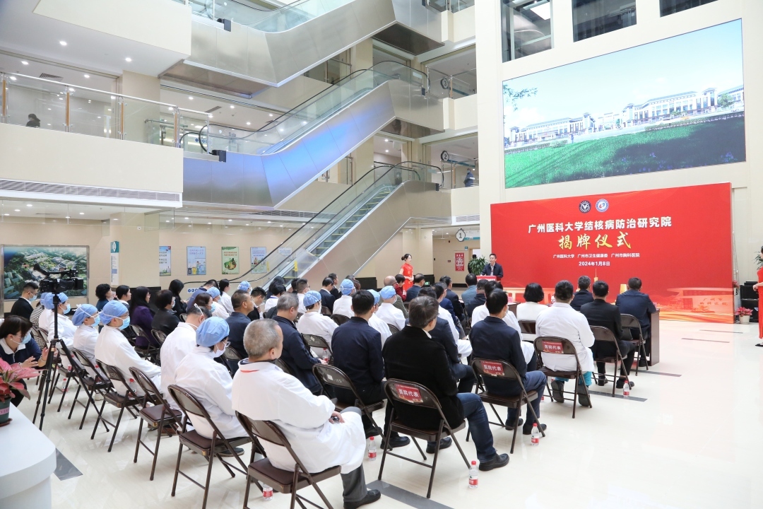 1月8日下午,广州医科大学结核病防治研究院揭牌仪式在广州市胸科医院新门诊楼举行,标志着这家以呼吸道传染病和胸肺诊疗为特色的专科医院与国家“双一流”建设高校实现了强强联手,将有力促进广州呼吸道传染病防控体系建设,持续提高广州地区结核病科研和防治水平。