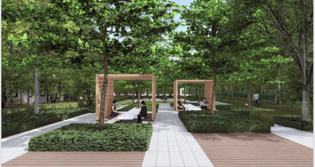 该片区老旧小区的显著特点是均有核心集中绿地,改造对其进行景观提升,功能升级。针对小区的灰色空间、闲置用地,补充性地植入功能。比如,梅苑小区将进行面积超2000平方米的绿化品质提升——规模在5个小区之中最大,改造破损的儿童活动场地,活化180平方米的闲置单体建筑。