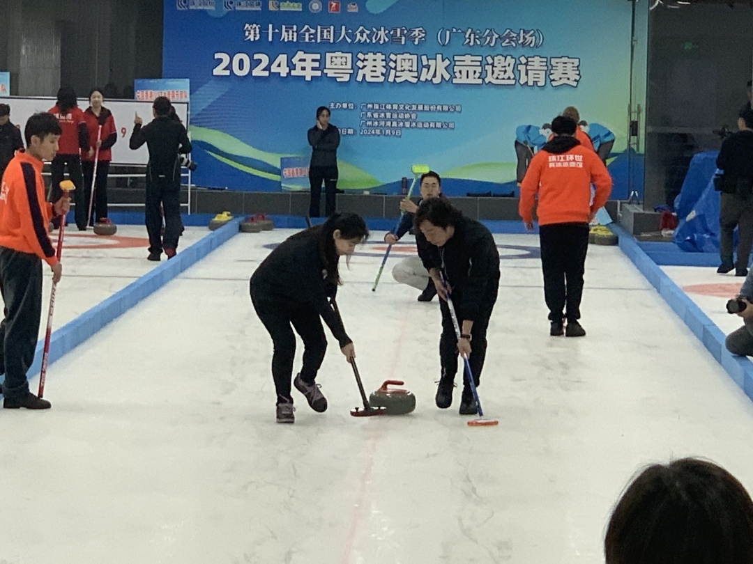 启动仪式过后,2024年粤港澳冰壶邀请赛正式开始,为第十届全国大众冰雪季·广东站正式拉开帷幕。这是“迎2024新年·盼2025全运”背景下举办的首场粤港澳大湾区冰壶竞赛,香港JUST冰壶俱乐部队、香港锦上路冰壶俱乐部队、珠江环世冰壶队、广州冰河湾冰壶队四支专业冰壶队同台竞技。