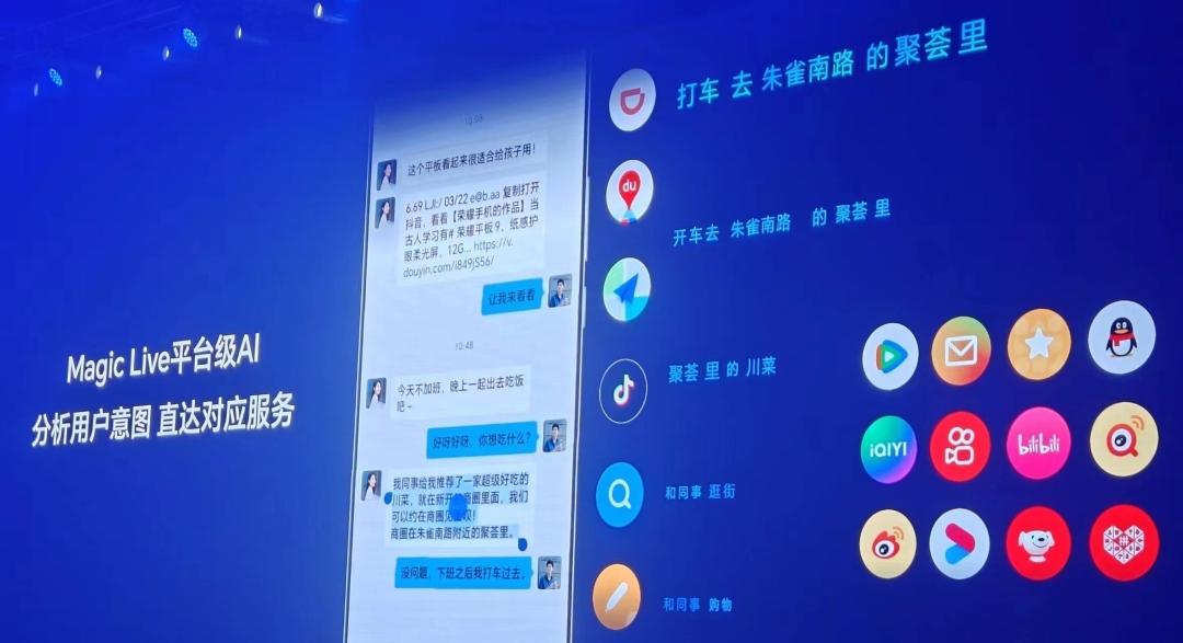 基于Magic Live平台级AI的场景感知、意图决策、用户理解能力,魔法OS8.0的IUI支持自然语言、语音、图片、手势、眼动等多模态的交互方式,可智能识别用户意图,进行快速推理决策,主动提供个人化服务,高效完成复杂场景任务闭环,大大降低OS的使用门槛,带来了交互效率的提升。