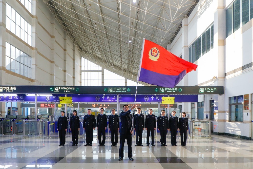 在浓厚的节日氛围中,顺德边检移民管理警察仍然坚守在岗位上,更加用心地履行着自己的职责使命,通过与警旗合影、向警旗敬礼等方式向警察节献礼。