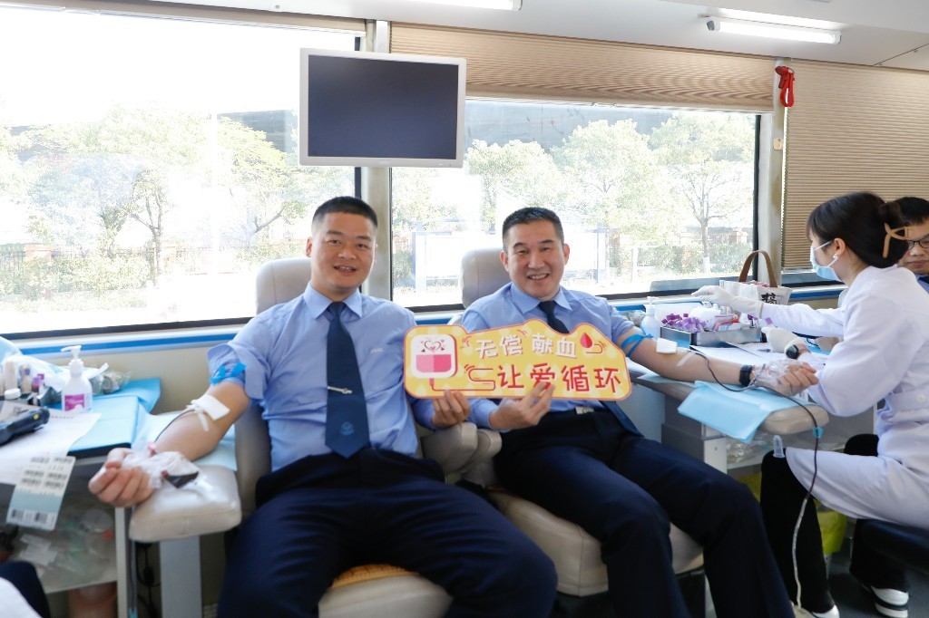 顺德区中心血站的流动献血车也在警察节当天来到顺德边检站警营,纷纷参与献血的移民管理警察在血站工作人员指引下登记、化验、信息录入……以这种特殊方式庆祝人民警察节。