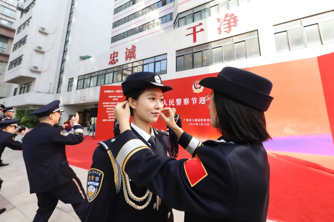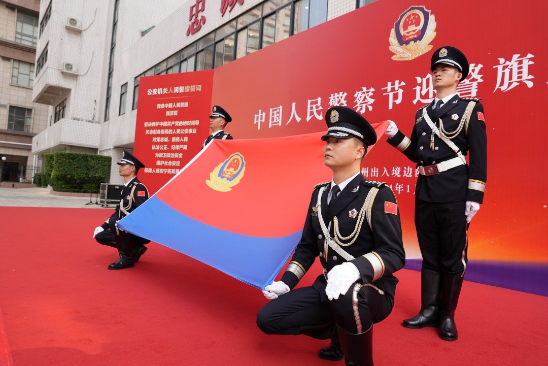 为庆祝第四个中国人民警察节,进一步锻造忠诚警魂、激励警心斗志、凝聚奋进力量,1月10日上午,广州出入境边防检查总站举行中国人民警察节迎警旗宣誓仪式。