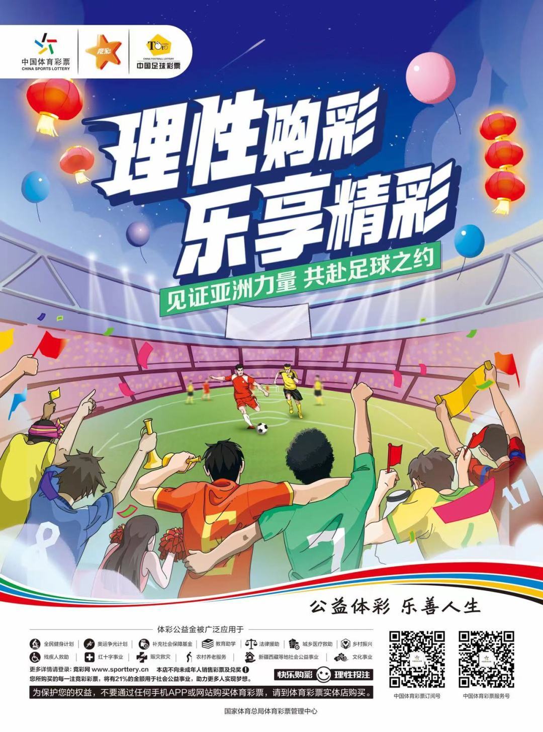 然而,正是这样的时刻,我们更应该保持节制,以理性的态度参与购彩。大家应以平常心、公益心、娱乐心来参与赛事竞猜,这才是我们购买竞猜型彩票的初衷。只有这样,我们才能更好地支持国家公益事业,才能更好地享受亚洲杯足球赛事带来的乐趣。