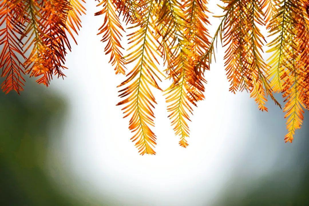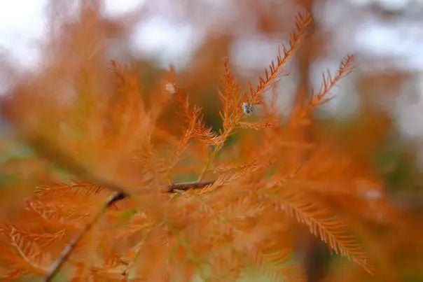 微风轻轻划过,被染红的红杉叶子在空中飞舞,落在路人的肩上,大家随手捡起,便是大自然赋予的最好的礼物。大家踩在厚厚的红杉落叶上,发出“咯吱咯吱”的声音,就像奏响了一曲美妙的冬日诗歌。