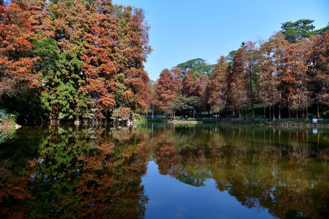 天河区各大公园湖畔的落羽杉,纷纷以“当红”之姿进入全年“最佳观赏期”。色彩斑斓的落羽杉,宛如大自然间打翻的调色盘,迎着暖阳,漫步红杉林中,品味冬日的馈赠,别有一番风味。