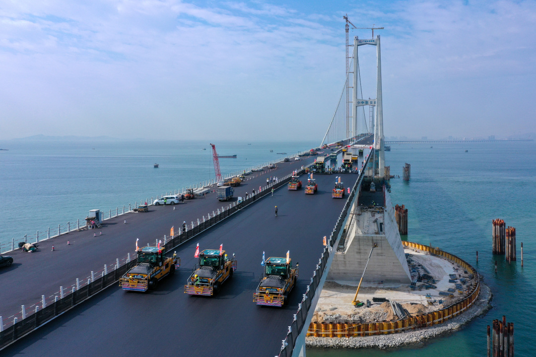 1月11日,广东交通集团发布消息,国家重大工程、粤港澳大湾区核心交通枢纽深中通道完成全部钢桥面铺装施工。当天下午1时,随着深中通道伶仃洋大桥东泄洪区右幅沥青摊铺结束,深中通道钢桥面铺装圆满完成,同时标志着世界上最大规模的热拌环氧沥青钢桥面铺装工程高质量完工。