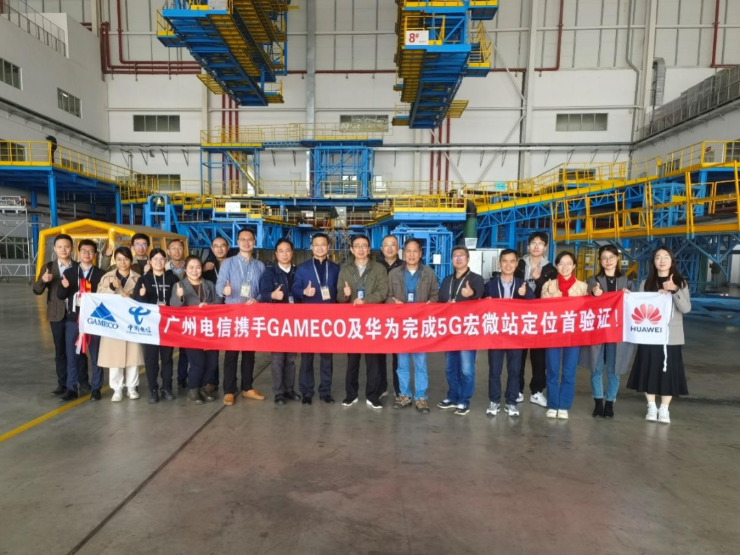 (广州电信携手GAMECO及华为完成5G宏微站定位首验证成功。)
