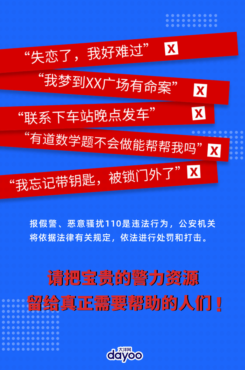 今年1月10日是全国第38个“110宣传日”,也是第4个中国人民警察节。110报警电话是生命保障线,但很多报警人情急之下说不清自己的诉求和处境,耽误了宝贵的救援时间。也有乱拨“110”电话、报假警等妨碍了群众正常报警电话拨入的现象,占用了有限的警务资源。你会正确拨打110报警电话吗?戳图,一起来了解正确的报警“姿势”↓