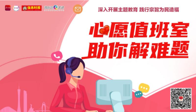 为深入开展学习贯彻习近平新时代中国特色社会主义思想主题教育,广州日报携信息时报、微社区e家通,在全媒体端口开通“心愿值班室”为民服务平台。如果您有急难愁盼,请告诉“心愿值班室”。