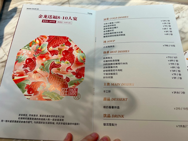 “我们一共有6个包厢,其他5个都已经订出去了。”服务员表示,包厢是有“最低消费”的,点餐时必须要达到2088元,否则就无法使用包厢。令人惊讶的是,除夕夜在大厅就餐,也需要达到一定标准。大桌的最低消费是每桌1588元,而小桌的最低消费则是人均200元。