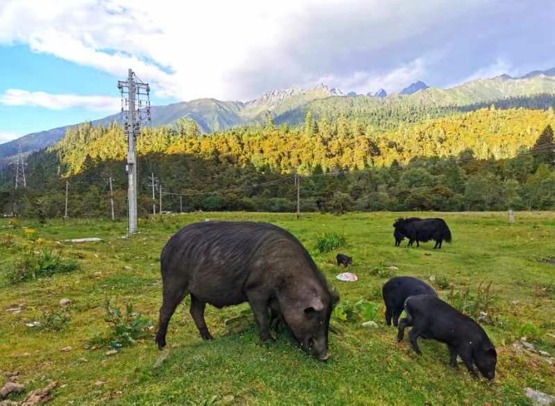 (生长在雪域高原的藏香猪。)