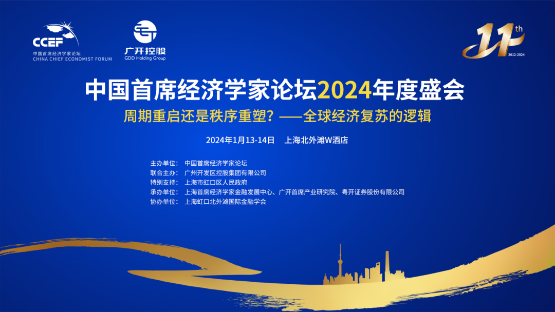 1月13—14日,在上海市虹口区人民政府的特别支持下,由中国首席经济学家论坛(下称“CCEF”)主办,广州开发区控股集团有限公司(下称“广开控股”)联合主办,上海首席经济学家金融发展中心、广开首席产业研究院、粤开证券股份有限公司承办的2024年中国首席经济学家论坛年会在沪举行。