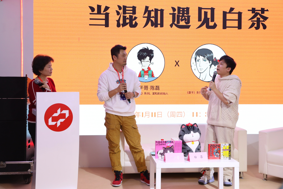 当吾皇猫的创作者白茶与混知的创始人混子哥相遇,会碰出怎样的火花?2024年北京图书订货会期间,白茶与混子哥陈磊现身北京图书订货会,进行了一场有趣而别开生面的对谈。