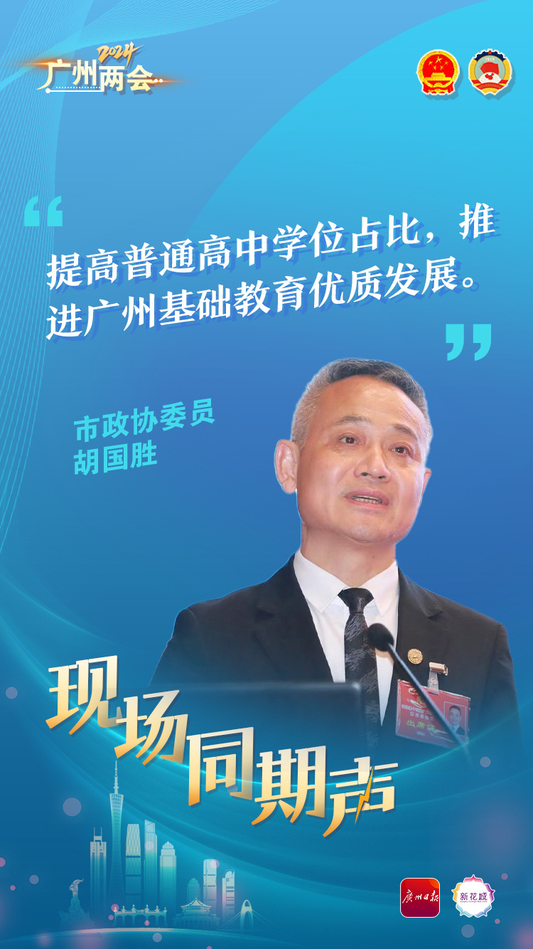 1月14日下午,政协第十四届广州市委员会第三次会议举行大会发言。胡国胜代表广州市政协文化文史和学习委员会、民革广州市委员会发言时提出,广州要不断满足人民对优质教育的期盼,迫切解决高中学位不足的现实问题。