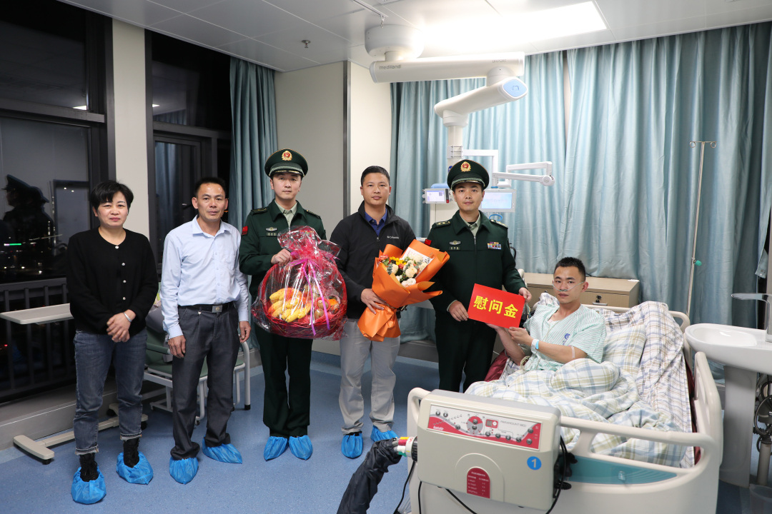 (图为武警广东总队、武警江门支队看望慰问陈凯松)