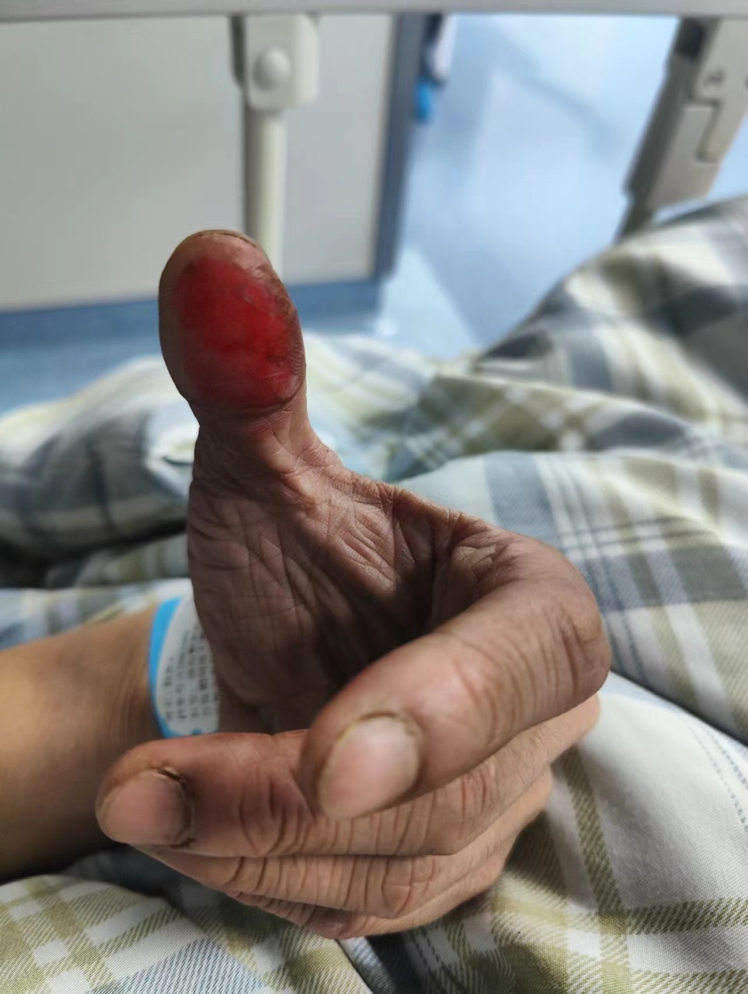(图为陈凯松救火时被烫伤的手指)