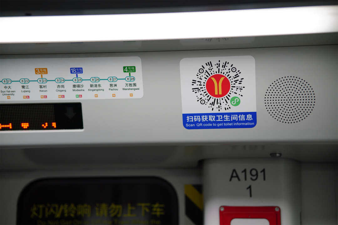 据悉,为方便乘客及时了解地铁站内及车站200米内的公共卫生间分布情况,广州地铁对线网各车站进行了信息摸查和统计,整理出清晰的“如厕指引”,制作成扫码标识,并于近日完成增设,范围覆盖各车站站厅、站台以及列车车厢。
