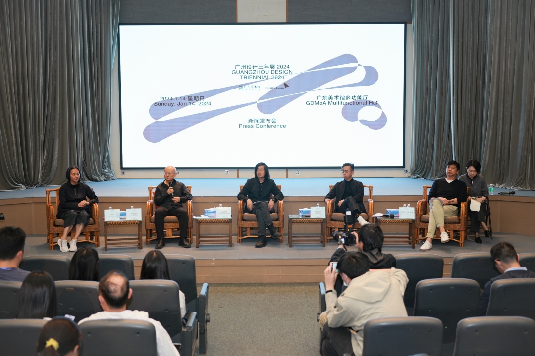 1月14日,首届“广州设计三年展”新闻发布会于广东美术馆召开,总策展人王绍强、主题策展人李德庚、社区平行展策展人胡智义、以及参展艺术家代表查朋·春鲁迪、刘珩出席。