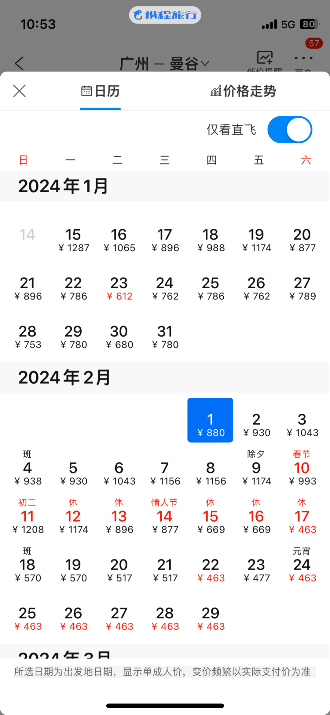 记者查询多个日期后发现,这一低价趋势一直持续到3月底。