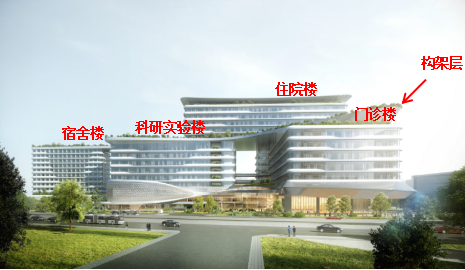 项目总建筑面积约为10万平方米,建设内容包括门诊楼、科研楼、宿舍楼、住院楼、地下车库及相关配套设施,计划设牙椅400张、病床200张、机动车停车位692个。