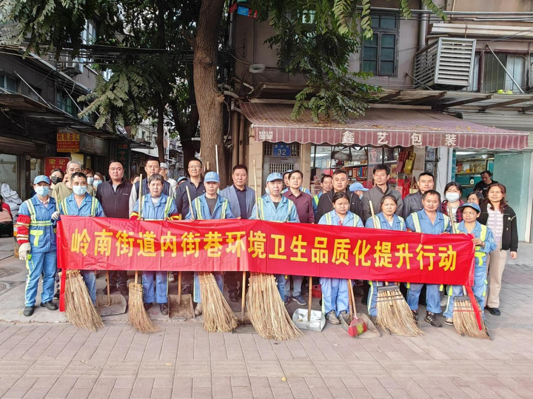 1月10日下午,在区城管执法局指导下,岭南街道在清平社区举行内街巷环境卫生品质化提升行动,区城管执法局三级高级主办郭红、岭南街道办事处主任陈定海、岭南街道二级调研员李翔,以及区城管执法局环卫科、岭南街道执法办、环卫站等40余人参加。