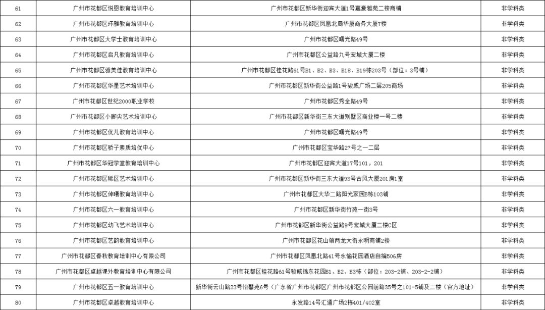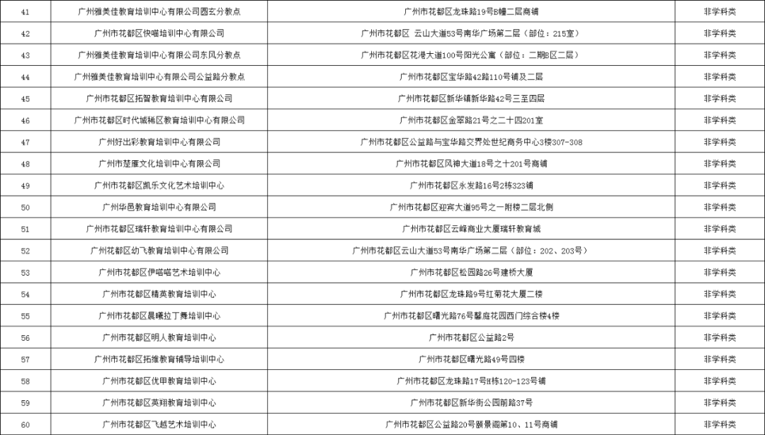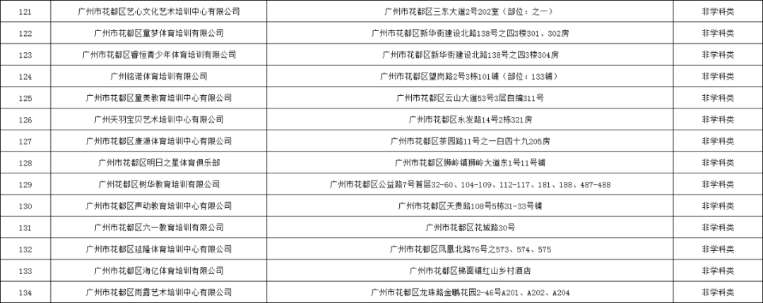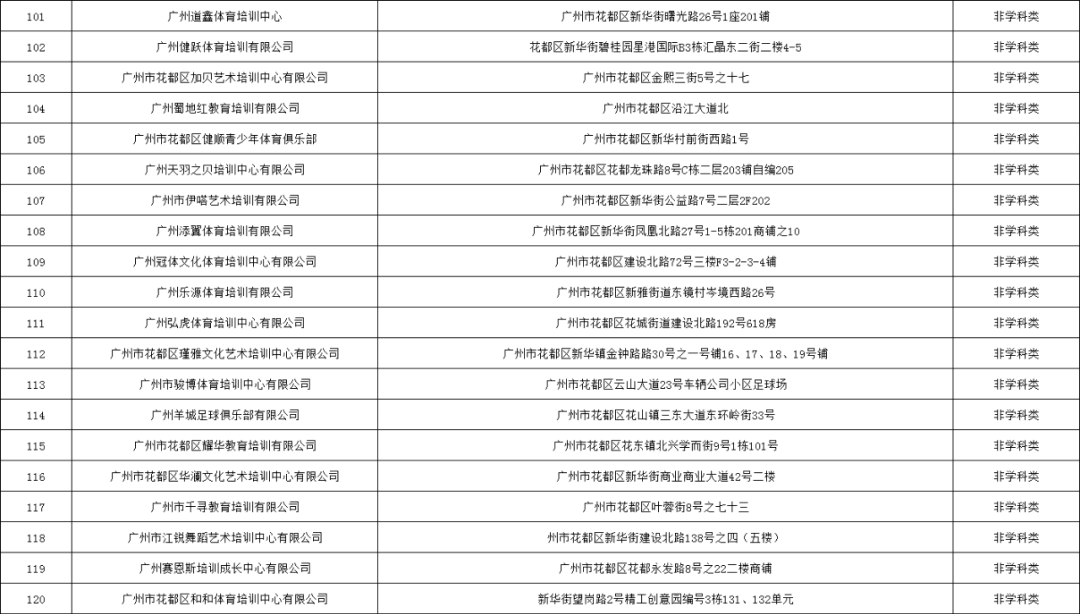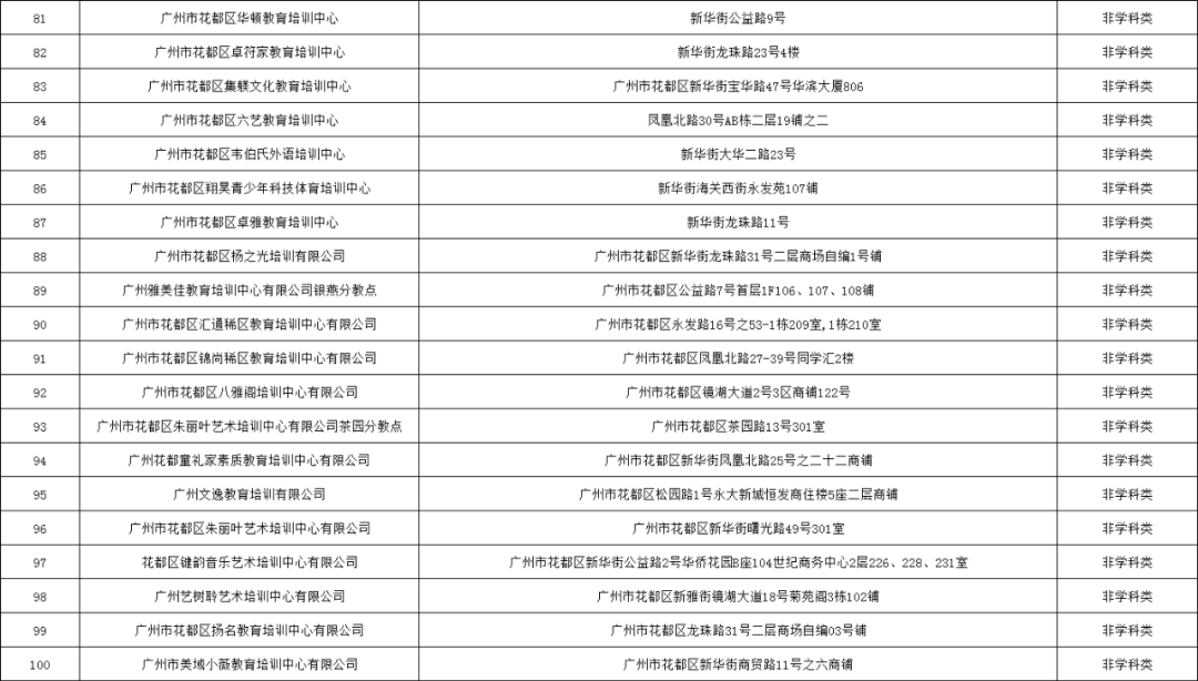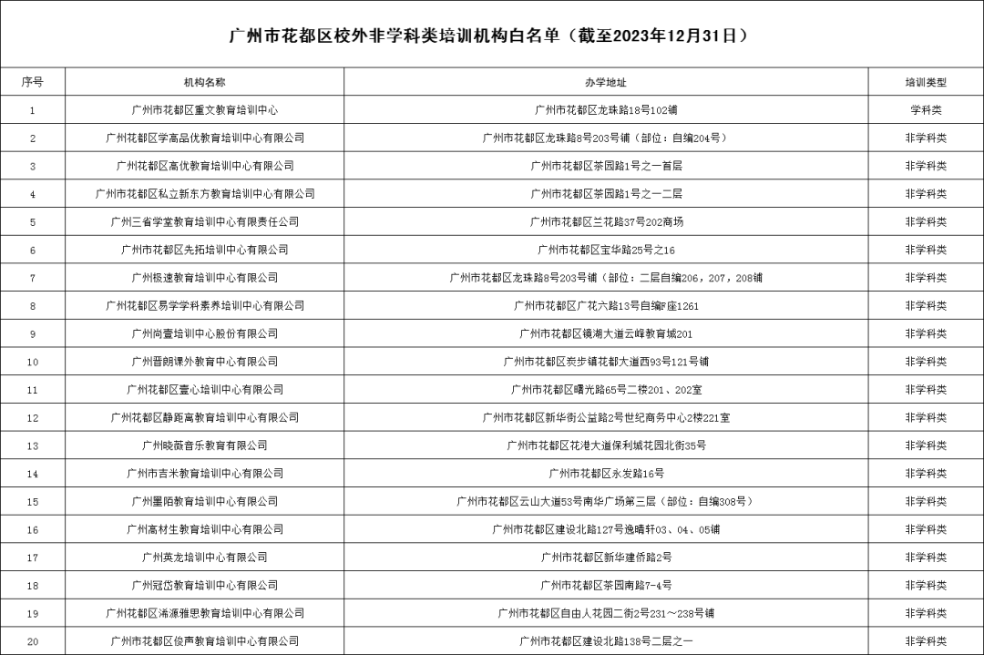 1月15日,花都区教育局公布花都区证照齐全的校外培训机构名单。该名单数据更新至2023年12月31日,花都区将对名单实行动态管理、不定期更新。