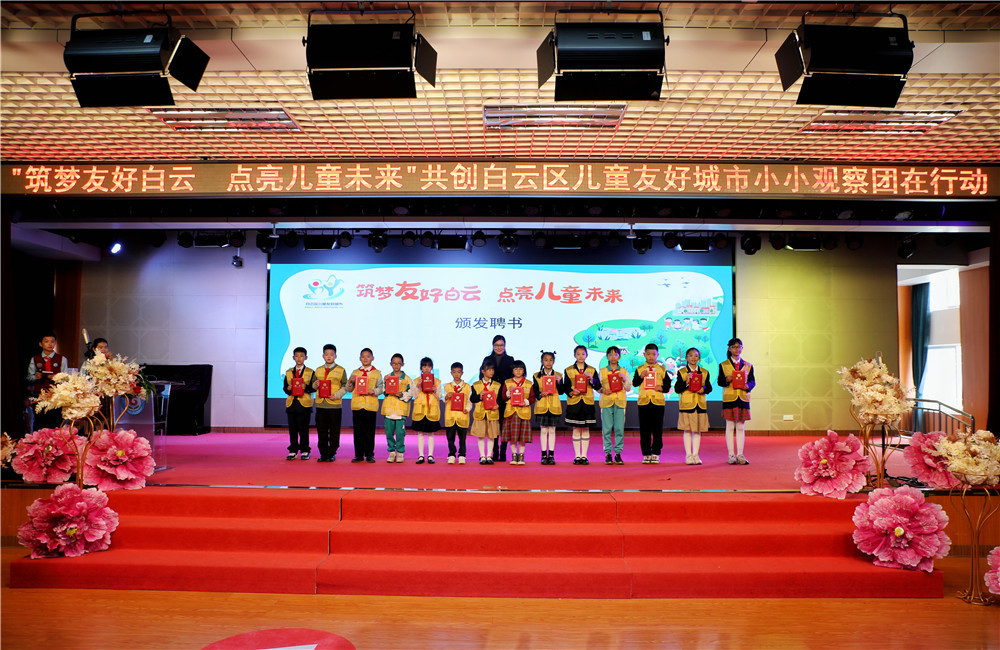 活动中,主办方为白云区儿童友好城市小小观察团授旗,并为小小观察团成员颁发聘书,意味着儿童视角将在城市规划和发展中发挥重要作用。白云区儿童友好城市小小观察员代表分享了他们心中理想的儿童友好城市构想,展现了孩子们对未来生活的憧憬和期待。