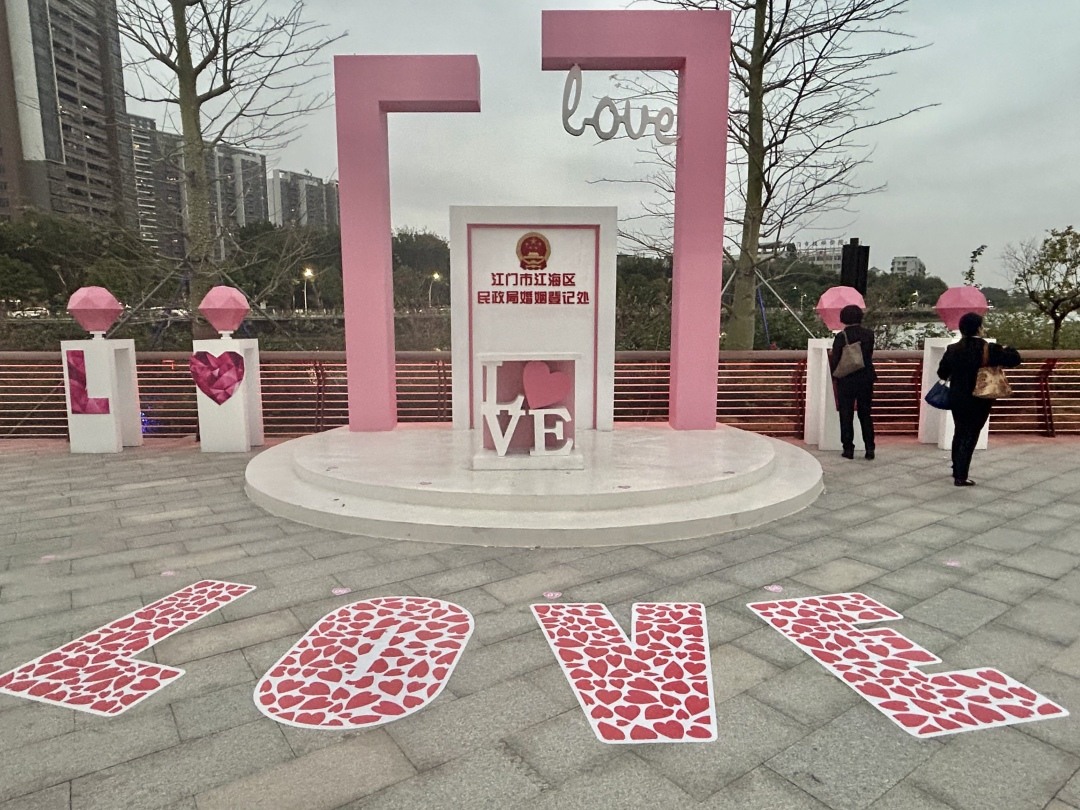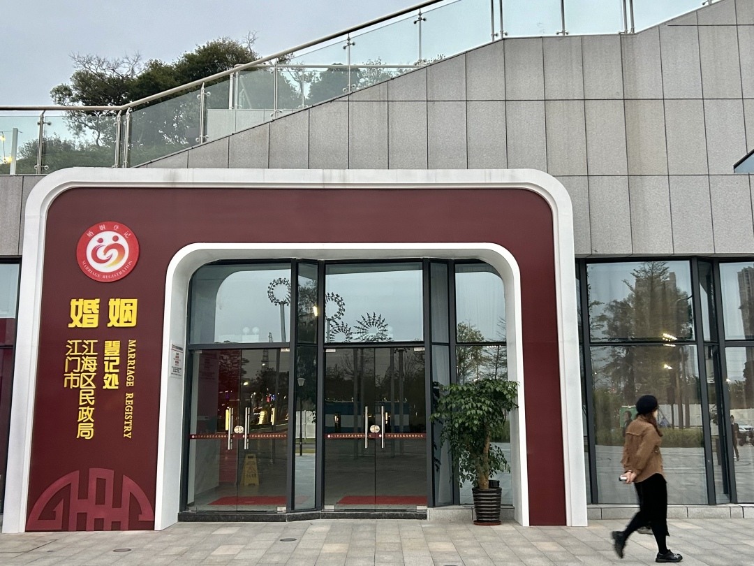 1月16日,江海区民政局婚姻登记处新址在油湾公园正式揭牌启用,这是江门市首家建在公园里的婚姻登记处,为登记结婚的新人营造了一份难忘的爱情体验。