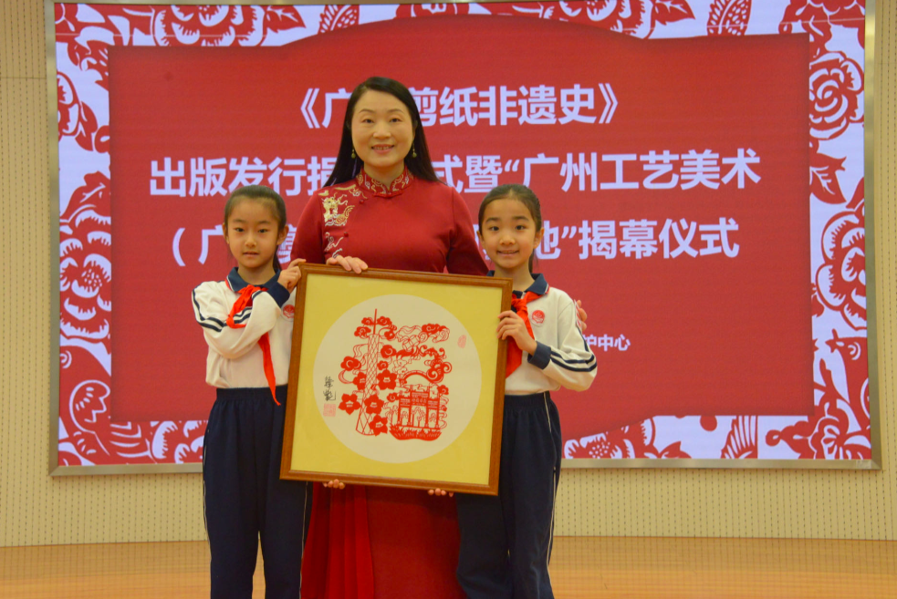 1月17日,由广州市海珠区昌岗中路小学、广州市海珠区少年宫主办的《广州剪纸非遗史》出版发行捐赠仪式暨广州工艺美术(广州剪纸)传习基地揭幕仪式在海珠区昌岗中路小学举行。广州市级剪纸非遗代表性传承人韩艳把自己编著出版的广东省首本剪纸历史著作《广州剪纸非遗史》现场捐赠给了海珠区全区的中小学校和文化单位。海珠区昌岗中路小学也被广州工艺美术行业协会授予“广州工艺美术(广州剪纸)传习基地”称号,该校成为广州市首个被授予此殊荣的单位。