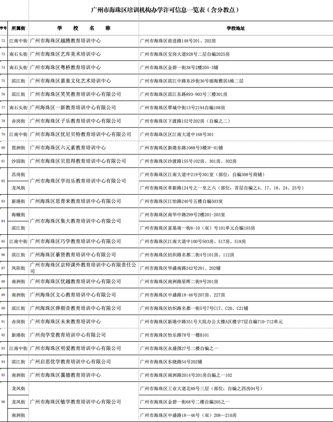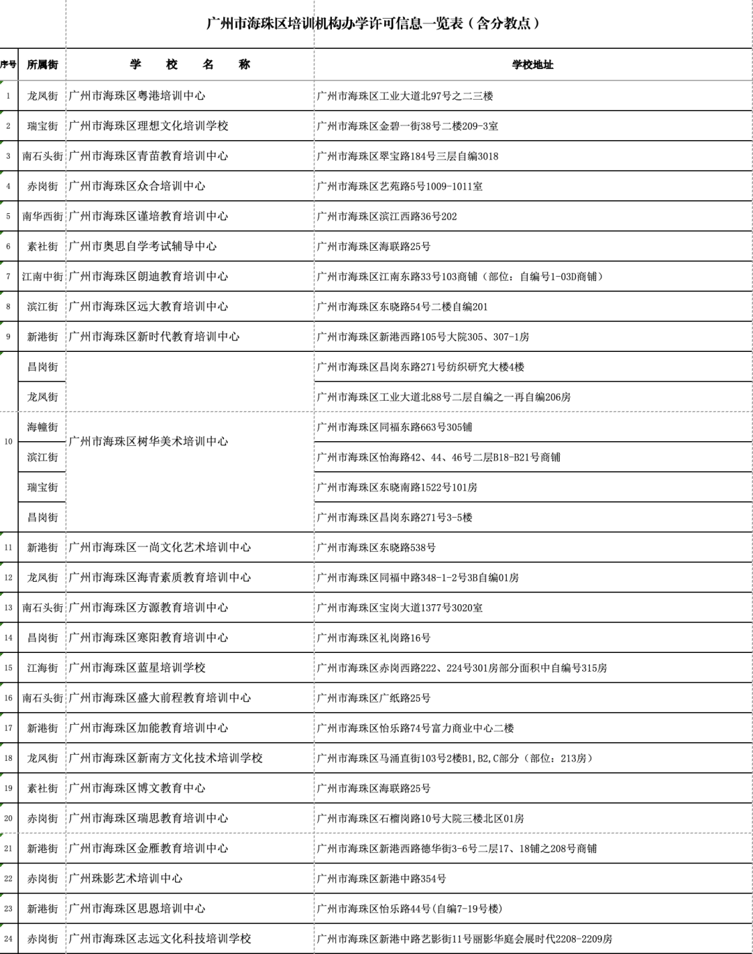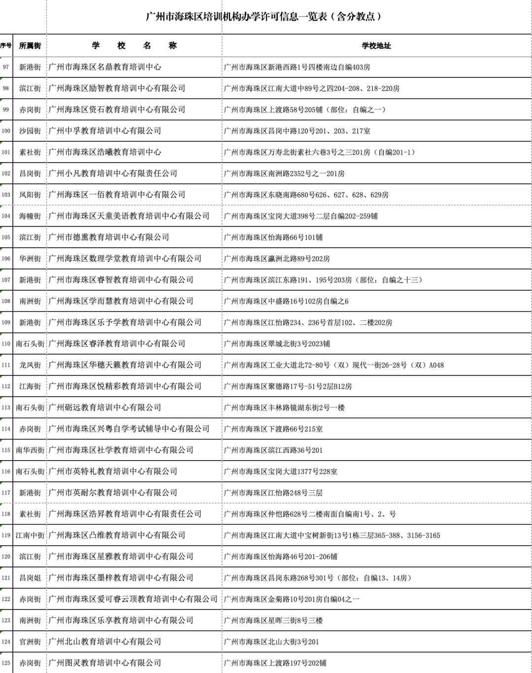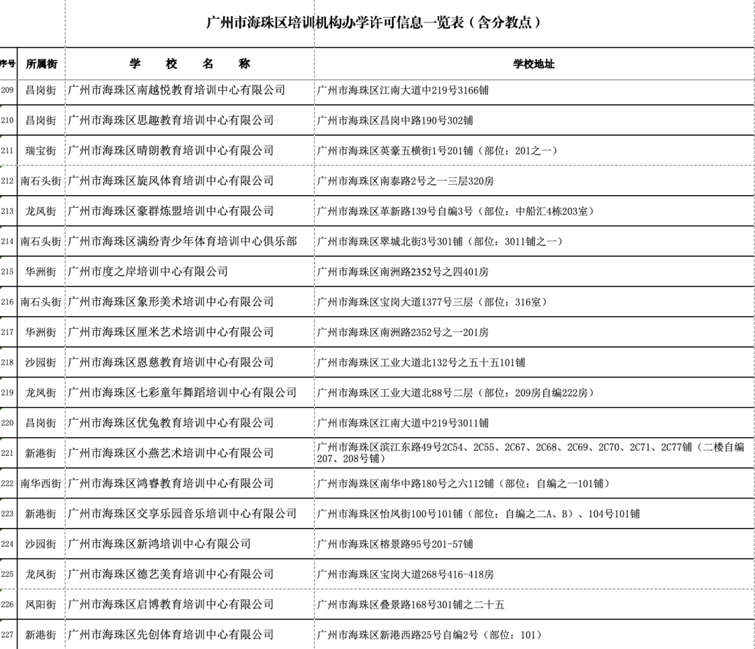 1月18日,广州市海珠区公布广州市海珠区证照齐全的校外培训机构名单(数据更新至2024年1月10日)。
